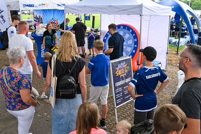 Der KSC-Familientag ist ein fester Termin im Kalender vieler Fußballbegeisterter und längst zu einem echten Highlight für Fans jeden Alters geworden. An diesem Tag kommen Anhängerinnen und Anhänger, Familien und auch viele unserer eigenen Beschäftigten in einer entspannten, fröhlichen Atmosphäre zusammen. Zwischen Mitmachaktionen, Bühnenprogramm und spannenden Einblicken hinter die Kulissen entsteht ein Ort, an dem Begegnungen und gemeinsamer Austausch im Mittelpunkt stehen.
