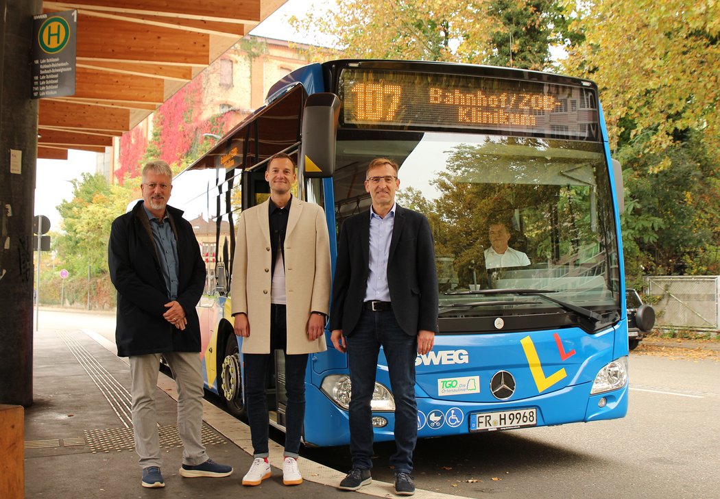 Die Buslinie 107 in Lahr fährt seit Anfang Oktober 2025 dauerhaft eine neue Strecke: Anstatt im Rundkurs in der Innenstadt zu verkehren, verbindet sie den Lahrer Westen samt Gartenhöfen, den Bahnhof, die Innenstadt sowie Burgheim mit dem Wohnquartier Hosenmatten II und dem Ortenau Klinikum.