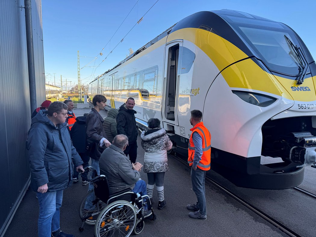 Außergewöhnlichen Besuch konnte die Südwestdeutsche Landesverkehrs-GmbH (SWEG) vergangene Woche auf dem Gelände ihrer Bahnbetriebswerkstatt in Offenburg begrüßen: Zu Gast waren sechs Personen mit Behinderung von der Lebenshilfe Offenburg. SWEG-Werksleiter Daniel Oser zeigte ihnen, wo die Züge repariert und gewaschen werden. Außerdem stand eine kleine Zugfahrt auf dem Gelände an, die auch exklusive Blicke in den Führerstand ermöglichte. Bei den Besuchern mit Behinderung kam das sehr gut an. „Sie freuen sich immer über neue Erfahrungen“, sagt Lucien Wörter, Gruppenleiter in der Abteilung Fördergruppe bei der Lebenshilfe, der die Gruppe zusammen mit Azubi David Schwär begleitete. „Besuche wie diese ermöglichen den Behinderten Teilhabe am gesellschaftlichen Leben – zumal sie alle das Zugfahren lieben“, so Wörter. Auch für Daniel Oser und seine Kollegen war der Besuch eine Abwechslung im Tagesgeschäft: „Es war schön zu sehen, wie man mit kleinen Dingen anderen eine echte Freude machen kann.“